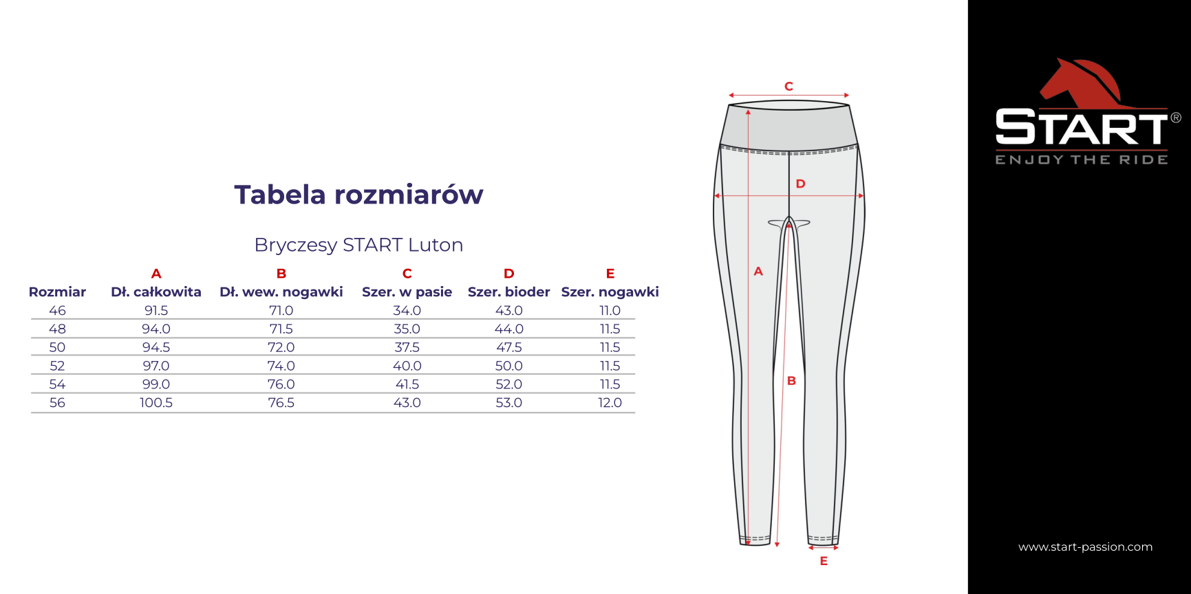 Bryczesy męskie Start Luton posiadają elastyczne wstawki na pasie, umożliwiają noszenie bryczesów z większym komfortem, idealnie dopasowując się do ciała i zapewniając wygodę noszenia przez cały dzień. Lej silikonowy z unikatowym wzorem, dodającym stylowego wyglądu oraz wykonanie z lekkiego materiału, czynią bryczesy męskie Start Luton nie tylko funkcjonalnym, ale także modnym elementem garderoby każdego jeźdźca.