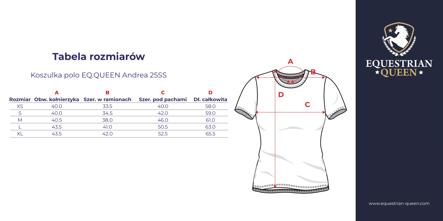Model polo EQ.QUEEN Andrea został zdobiony delikatnym nadrukiem, który subtelnie podkreśla kobiecy styl i sportową elegancję charakterystyczną dla marki Equestrian Queen. Starannie dobrane materiały i nowoczesny krój gwarantują lepsze przyleganie, co sprawia, że koszulka świetnie prezentuje się zarówno w siodle, jak i poza nim.