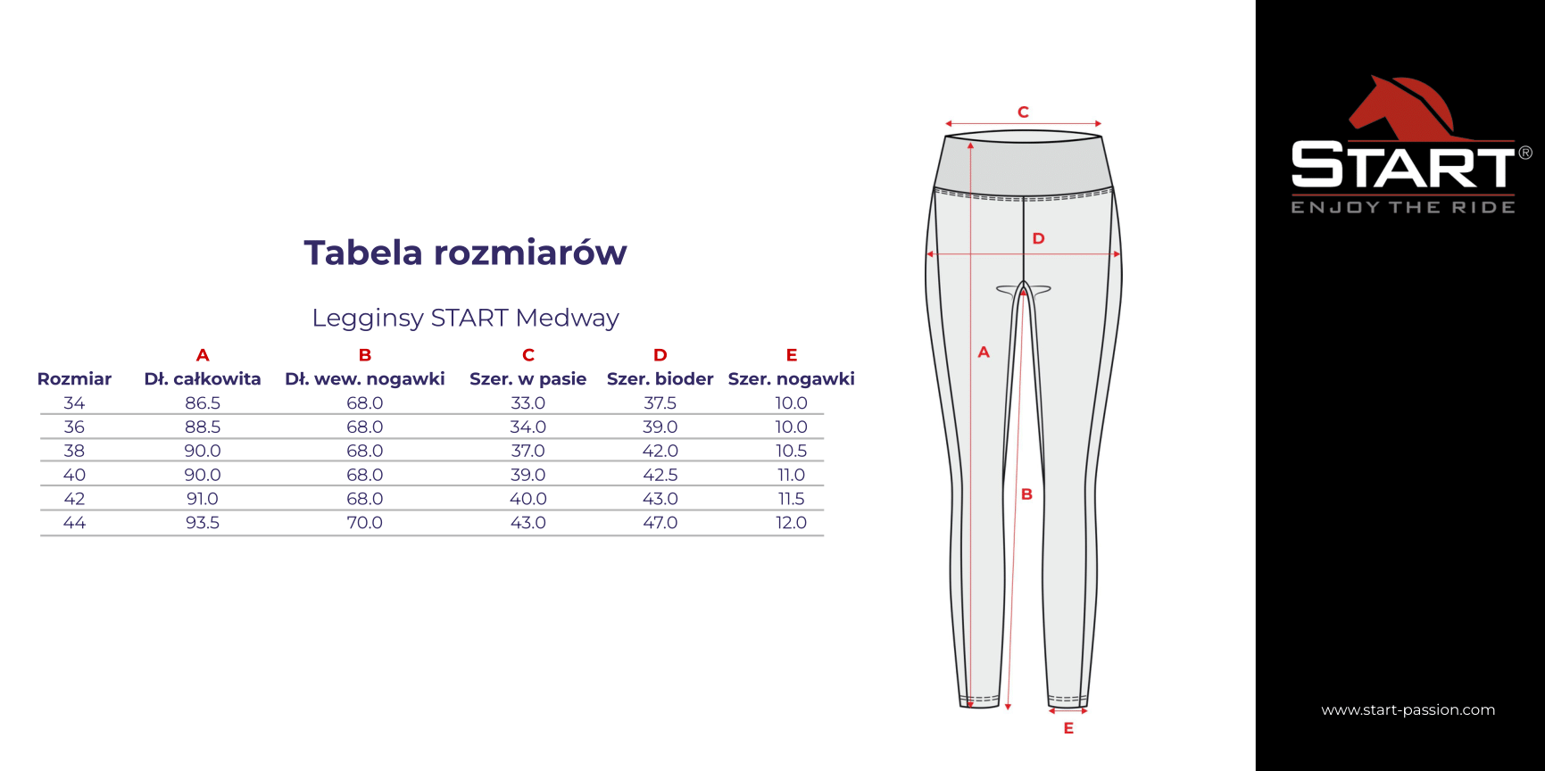 Legginsy START Medway damskie to połączenie funkcjonalności, wygody i nowoczesnego designu stworzone z myślą o wymagających jeźdźczyniach. Wykonane z elastycznego materiału, idealnie dopasowują się do sylwetki, nie krępując ruchów, co przekłada się na maksymalny komfort noszenia zarówno podczas jazdy, jak i codziennego użytkowania w stajni.