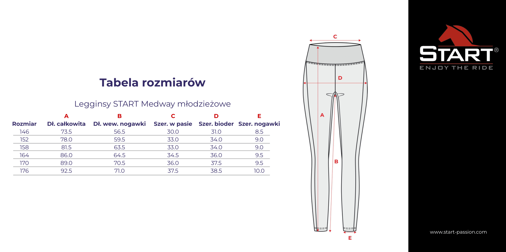 Legginsy START Medway młodzieżowe to połączenie wygody, nowoczesnego stylu i funkcjonalności stworzone z myślą o młodych pasjonatkach jazdy konnej. Wykonane z elastycznego materiału, legginsy START Medway zapewniają idealne dopasowanie do sylwetki, pełną swobodę ruchów oraz komfort noszenia niezależnie od warunków. Szeroki pas z logo START podkreśla talię, ale też jednocześnie zapewnia wygodne dopasowanie, co sprawia, że legginsy świetnie leżą i nie przesuwają się podczas jazdy.