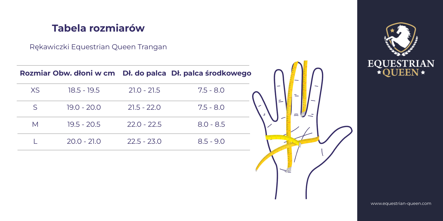 EQ.QUEEN Trangan to lekkie, funkcjonalne, a jednocześnie stylowe rękawiczki jeździeckie, zaprojektowane z myślą o komforcie i precyzji podczas jazdy w ciepłe dni oraz w sezonie letnim. Model stanowi niezbędny element wyposażenia każdego jeźdźca, który oczekuje niezawodnego chwytu wodzy, dobrego dopasowania do dłoni oraz estetycznego wyglądu.